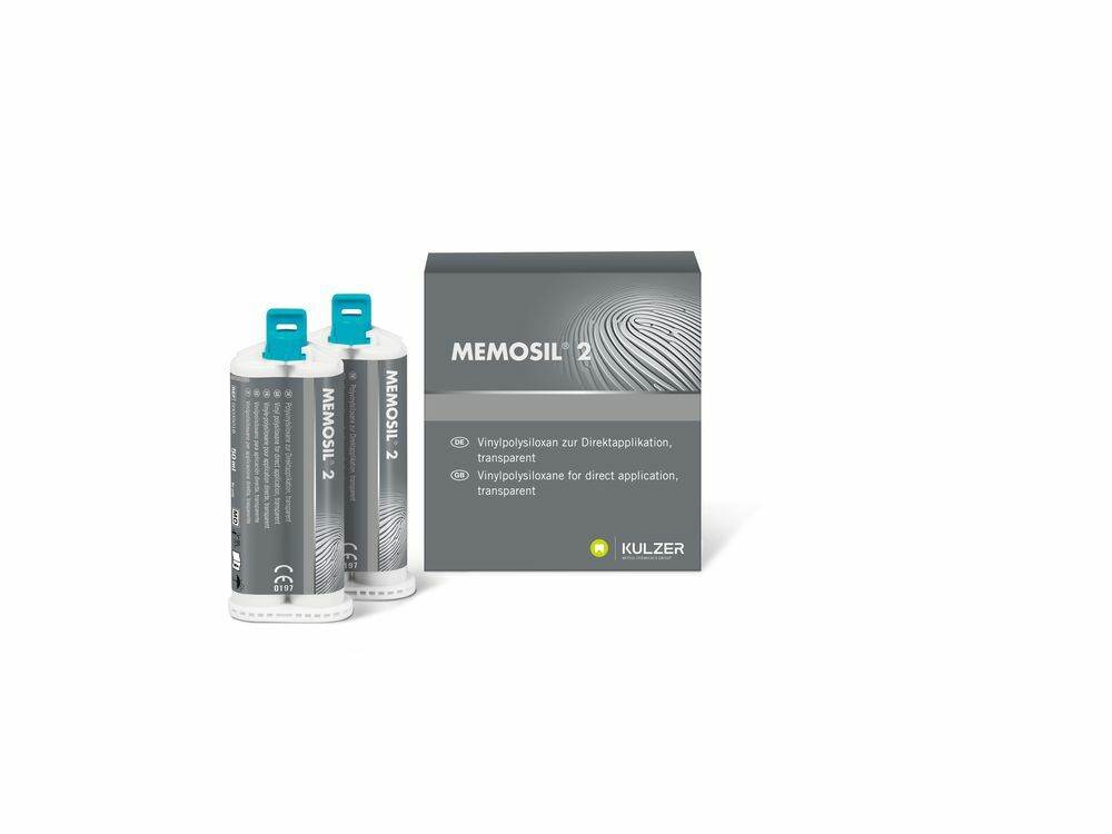 Transparent A-silicone for special indications. Its transparency allows optical control when positioning aids (e.g. X-ray measuring sphere). Light-curing is possible through Memosil 2. It is best used for the occlusal stamp for light-curing posterior composite, for anterior stamp for provisionals, fillings and veneers, as fixation material for X-ray measuring sphere when planning implants or as a transfer matrix for bracket constructions on the plaster model.