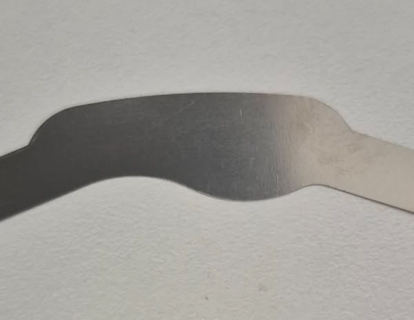 Bite foil tweezers, straight handles. Stainless steel. Chin length 7 cm, ribbed part 4 cm. The ribbed part ensures that the chewing paper stays on well.