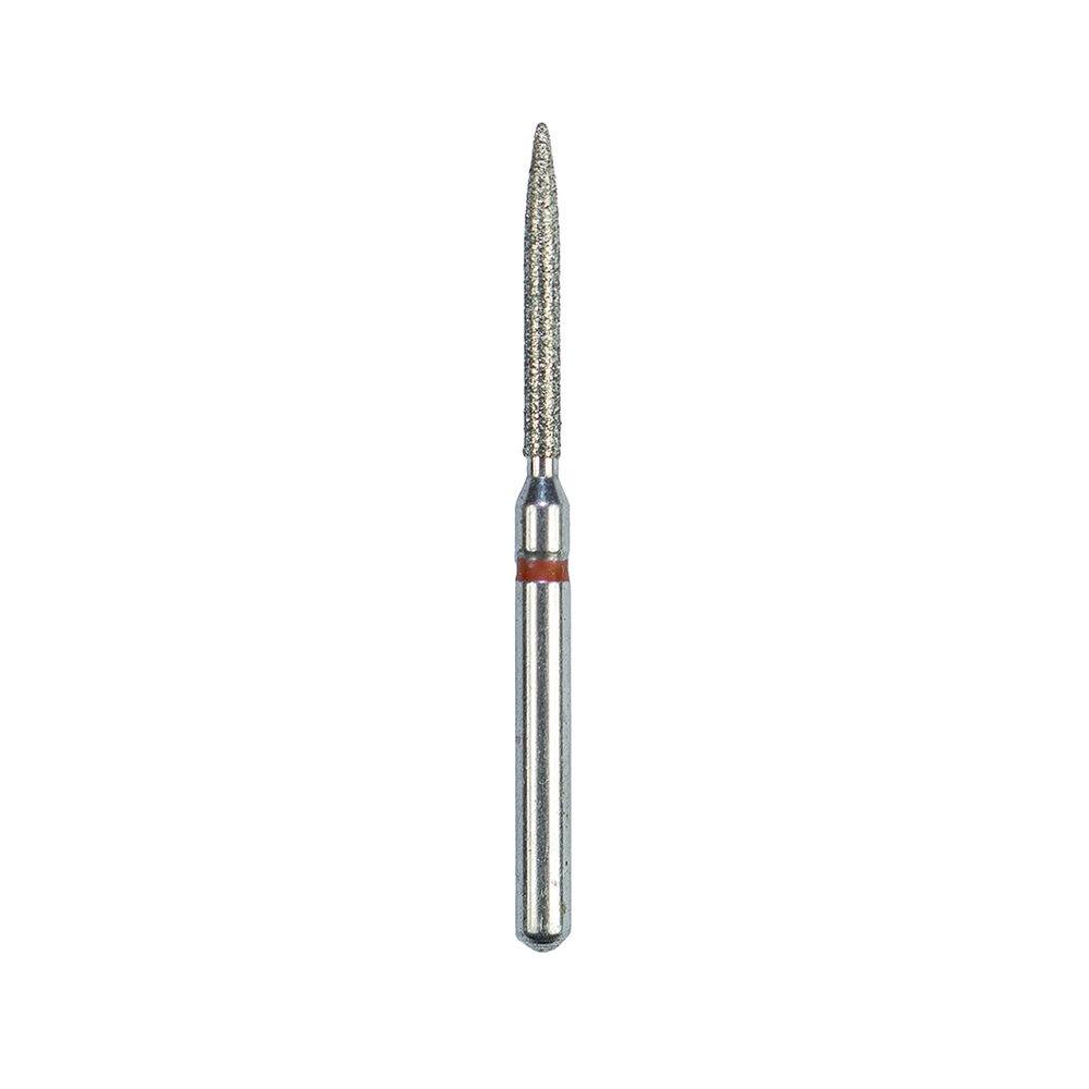 ORBIS Diamond Bur, flame shaped, fine grit, red ring. For turbine FG. The length of the working part is 10mm. Full length 23,5mm. ISO 806 316 250 514 012