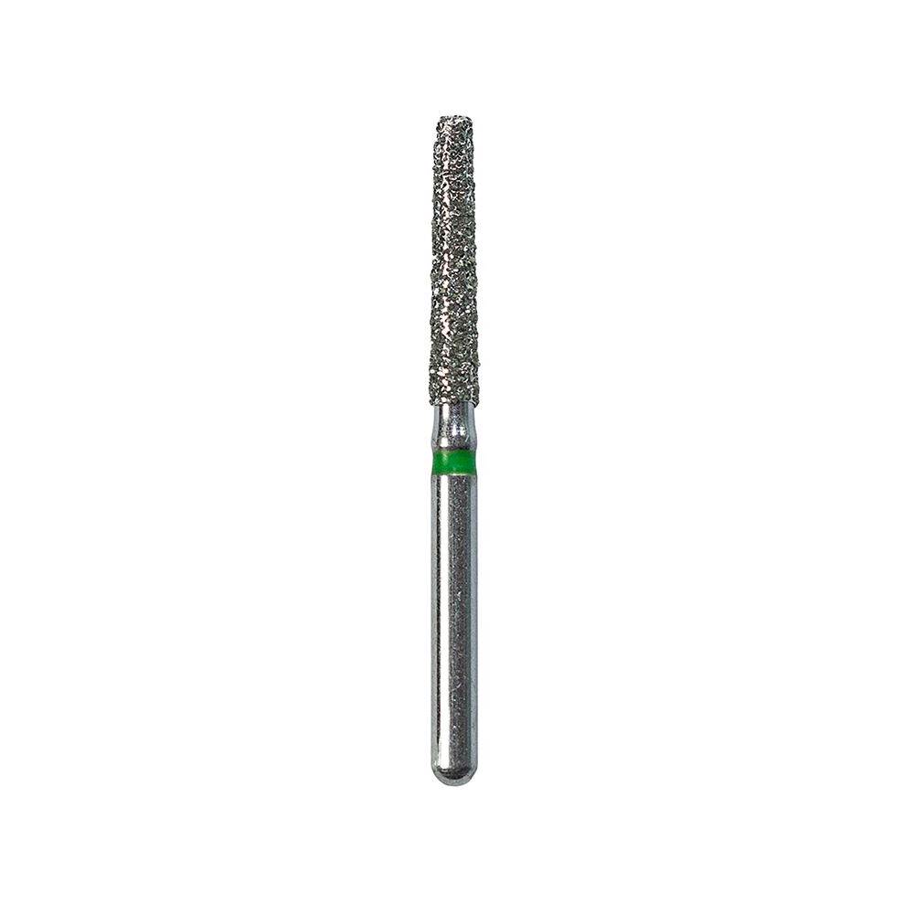 ORBIS Diamond Bur, flat end taper-shaped, coarse grit, green ring. For turbine FG, the length of the working part is 10mm Full length 22,5mm.