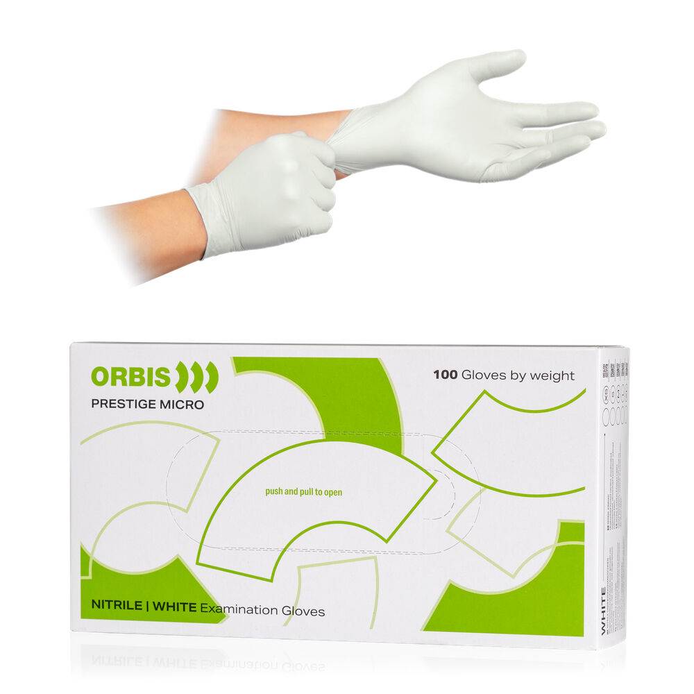 ORBIS Prestige nitrile examination gloves M white pkg of 1 x 100 each