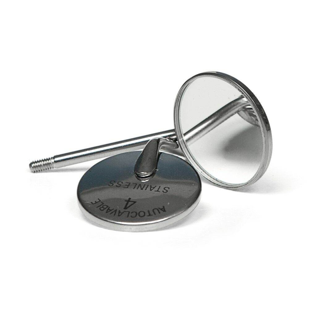Rhodium-plated mirror no. 4 ø 22mm. Mirror is so-called non-reflective which doesn’t double image of the object. Attach the mirror to the handle by holding the mirror’s stem. Twisting by holding the mirror can cause it to twist or detache.
