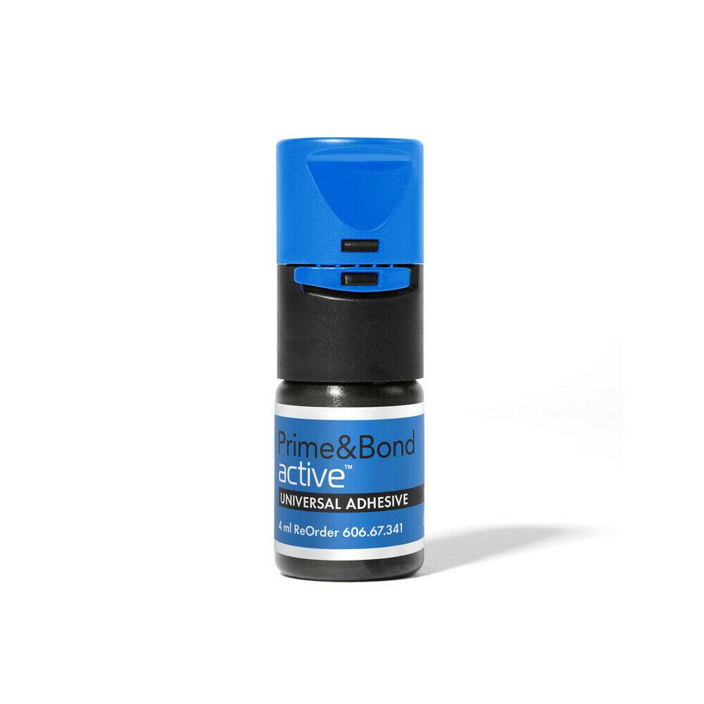 Prime & Bond Active™ is universal, light-cured, self-etch adhesive for both direct and indirect restorations. Patented Active-Guard -technology: Reliable performance on over-wet and over-dried dentin, virtually no post-operative sensitivity. Solvent: Isopropanol. pH 2.7. For use with all etching methods (total etch, self-etch, selective etch). Use: Apply and keep slightly agitated for 20s. Evaporate solvent with air for at least 5s. Light Cure 10s (≥800mW/cm2) – 20s (≥500mW/cm2). Bonds to enamel, dentin, composites, zirconia and metals. Indications: light cured composites, compomers and resin cements. Indications when mixed with Self Cure Activator: Dual cure/self cure composites, resin cements and composite core build-ups. Store at 2-24°C.
